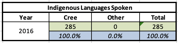 Indigenous Languages Spoken, 2016